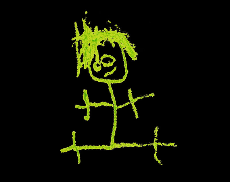 The Stick Man was Jonathan Munz’s first piece of art. Created using a medium of green Crayola crayon on drywall, this masterpiece still exists on the walls of the artist’s childhood home in Heidelberg, Ontario.